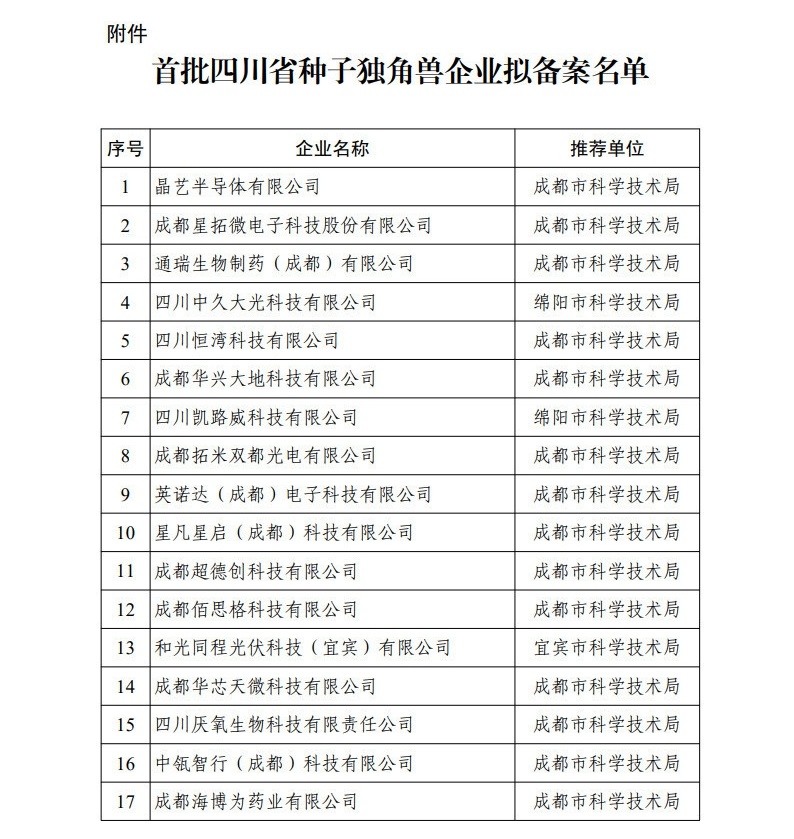 附:首批四川省种子独角兽企业拟备案名单(如下图)