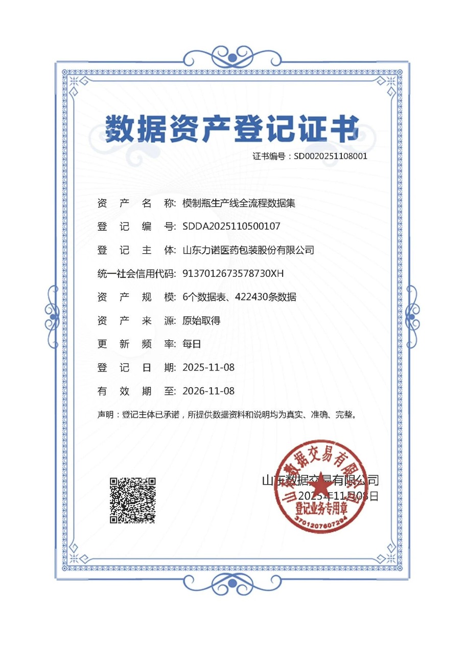在项目团队成员的共同努力下,力诺药包数据资产成功入表,这不仅是一次技术创新的胜利,更是公司面向未来、拥抱智能制造时代的必由之路。力诺药包将继续发挥数字化技术的优势,借助数据资产的深度应用,推动企业全方位的智能化升级。