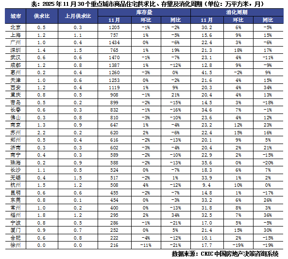 库存:供求比0.82致库存微降1%,三成城市去化周期改善