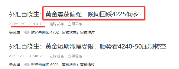 2025年12月2日 9:02外汇百晓生:黄金短线有所承压,或试探4200-4197支撑