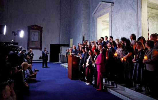 11月18日,美国华盛顿,民主党妇女核心小组在国会山为被定罪的性侵犯杰弗里·爱泼斯坦的受害者举办两党守夜活动。图/视觉中国