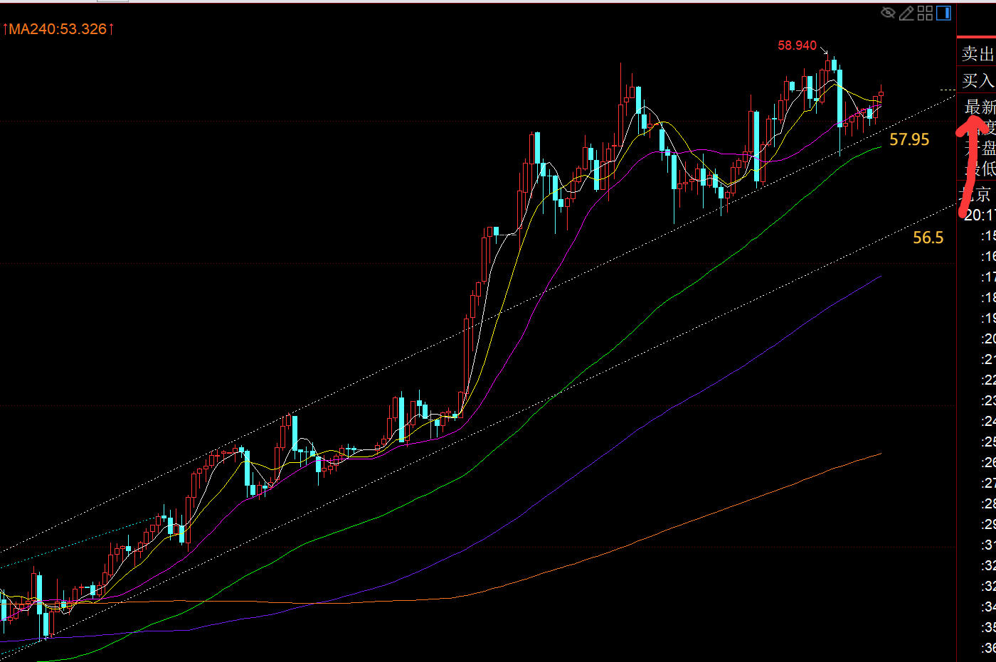 白银方面: 黄金日线更多的是处于震荡偏强运行,但白银是明显的单边趋势拉升,依托5均线一路走高; 今晚留意图中两处支撑,一个是57.95比较近,另一个是56.5靠近日线5均线,触及企稳继续看涨为主,由于不断地拉升,还未出现像样的回调修正,造成短周期macd持续顶背离酝酿,也要谨防小心突袭的急跌修复;