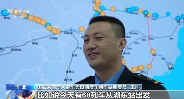 国铁太原局大秦车务段调度车间车站调度员 王坤:比如说今天有60列车从湖东站出发,到达秦皇岛转运港口,那我们要根据这三个港口的检修计划、接卸能力,来安排到达车流的合理调配。例如到达秦皇岛港有35列、曹妃甸港20列、京唐港5列。