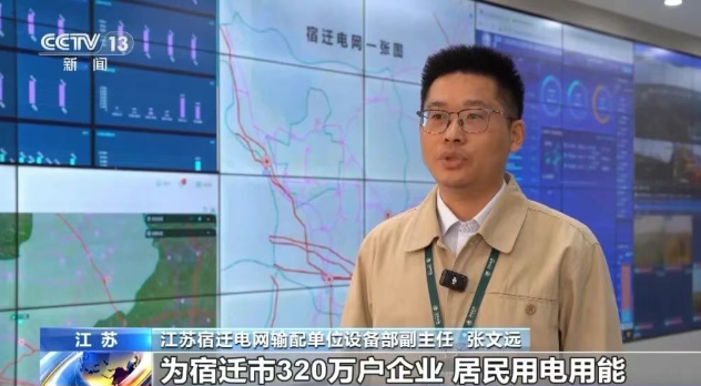 江苏宿迁电网输配单位设备部副主任 张文远:充足的电力资源供应,为宿迁市320万户企业、居民用电用能提供可靠支撑。