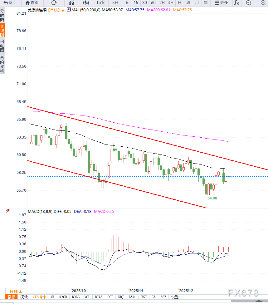 在缺乏明确利多驱动的情况下,WTI原油短期更可能维持56—60美元区间震荡。地缘政治消息或库存数据若出现明显偏多信号,油价才有望尝试向上突破。