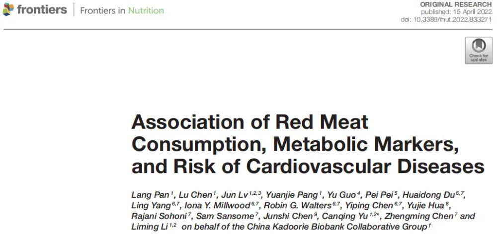 [1]PAN L, CHEN L, LV J,et al. Association of red meat consumption, metabolic markers, and risk of cardiovascular diseases[J]. Front Nutr,2022;9:833271.DOI:10.3389/fnut.2022.833271