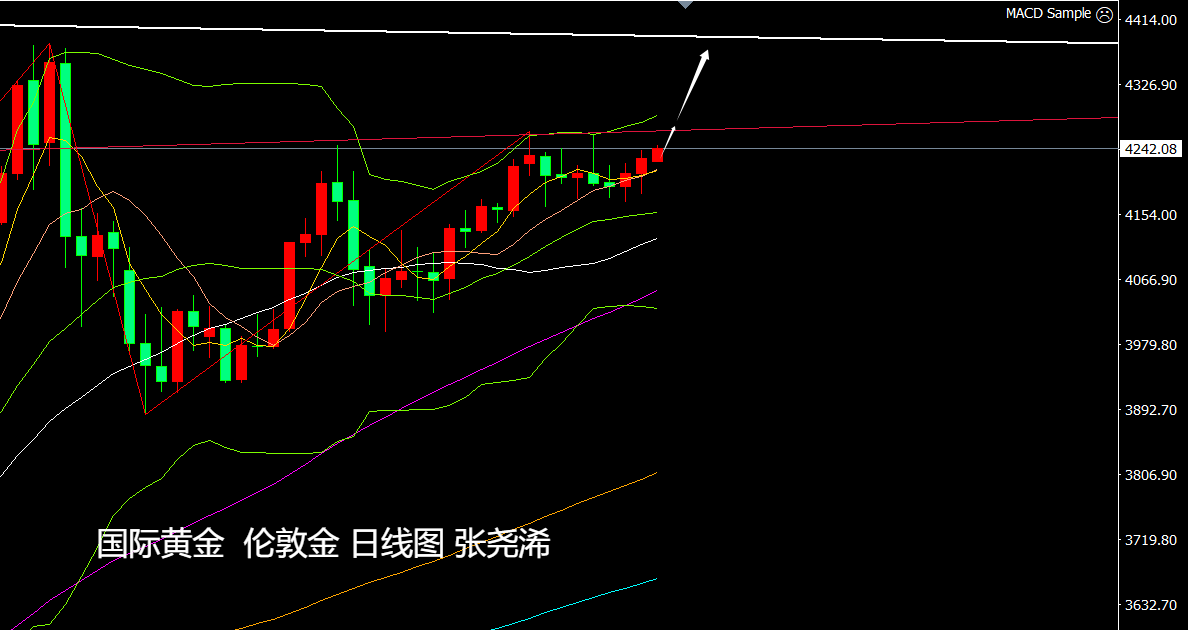 日图;金价近日震荡回升,处于短期均线及布林带中轨上方,看涨前景加大,后市将依托5-10日均线支撑继续看涨为主,等待再度触及4265美元附近阻力,如持稳收阳,则有望继续上探4350美元或更高位置。