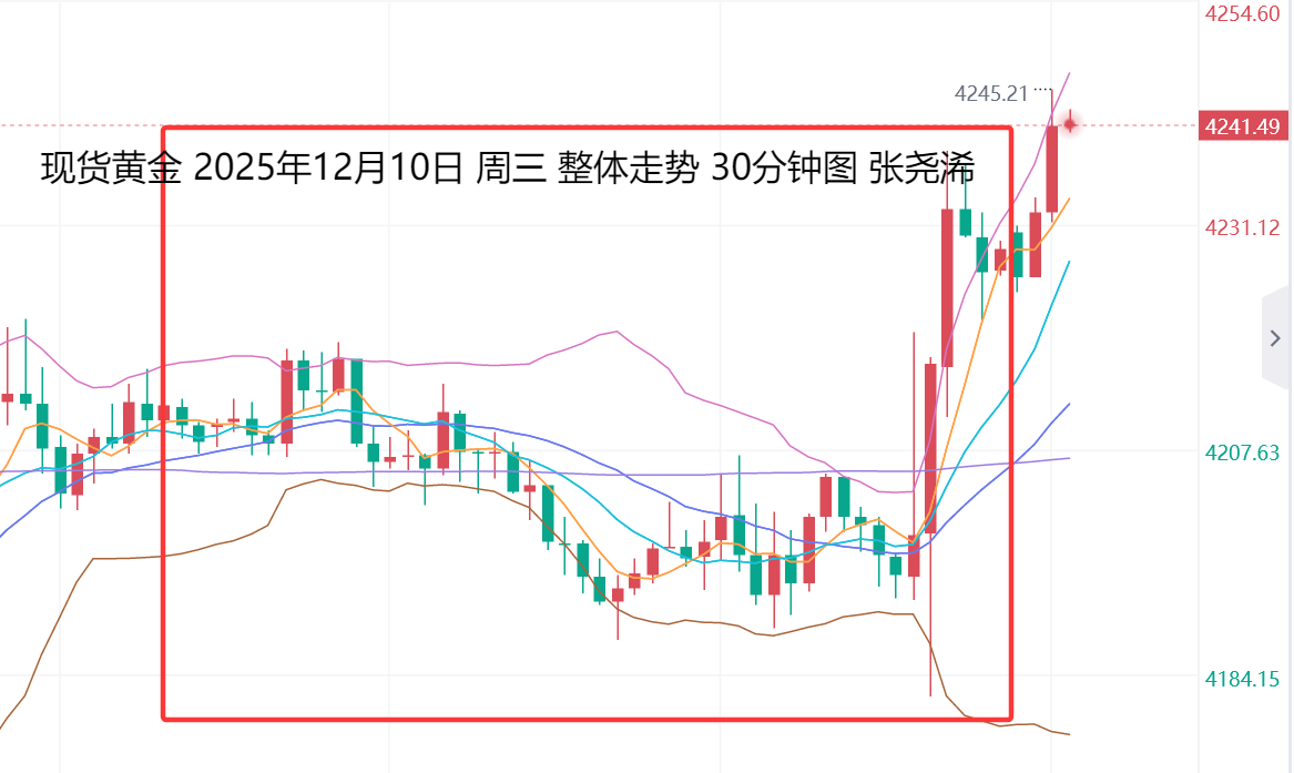 上交易日周三(12月10日):国际黄金触底回升收阳,再度收线在短期均线上方,多头力量加强,暗示后市仍有继续反弹的动力,再度上探4260美元附近阻力。突破则有望触及4340美元或更高位置。反之继续遇阻则有维持当下的震荡区间波动继续调整走盘。
