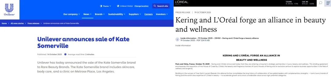提及国际美妆巨头出售品牌,近期引起行业极大关注的两个例子就是:联合利华宣布出售高端医美级护肤品牌凯诗薇(详见)、开云集团将旗下美妆部门(包括高端香氛品牌Creed)以40亿欧元(约合人民币331.96亿元)出售给欧莱雅集团(详见)。而奢侈品集团“舍弃”美妆也非个例,比如,前段时间LVMH集团旗下美妆孵化器Kendo首次出售彩妆品牌……