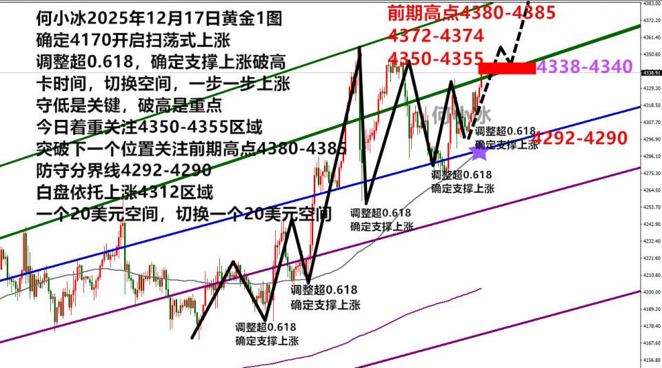 综合思路,给出第三次低多安排,4323-4318区域继续多,止损4308,目标4345,其次4353-4355,破高关注前期高点4380-4385