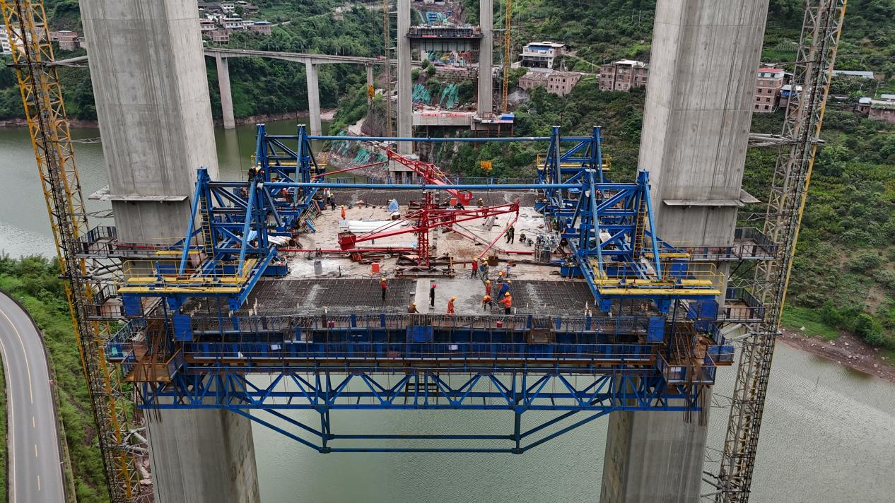 建设过程中,项目团队创新应用了“库区深水基础新型钢围堰”和“无轨式后支点挂篮技术”等先进工艺,有效克服了“深V峡谷索塔建造、水下陡坡基础施工和超宽变宽梁体悬臂浇筑”三大技术难题。