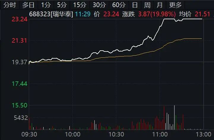 AI手机PC、折叠屏、无线耳机、AI眼镜等细分板块也纷纷跟涨,瑞华泰临近午间收盘20%涨停,欧陆通、兆驰股份、集泰股份等涨停或涨超10%。
