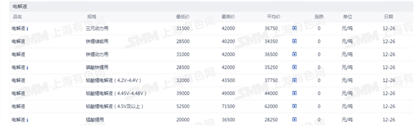 电解液价格