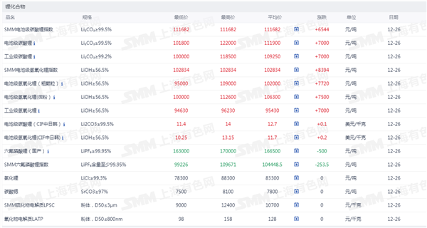锂化合物现货价格