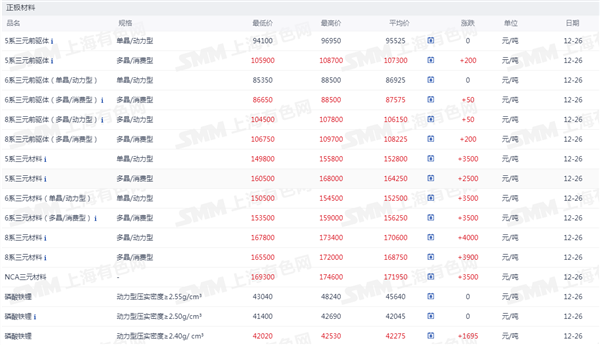正极材料价格