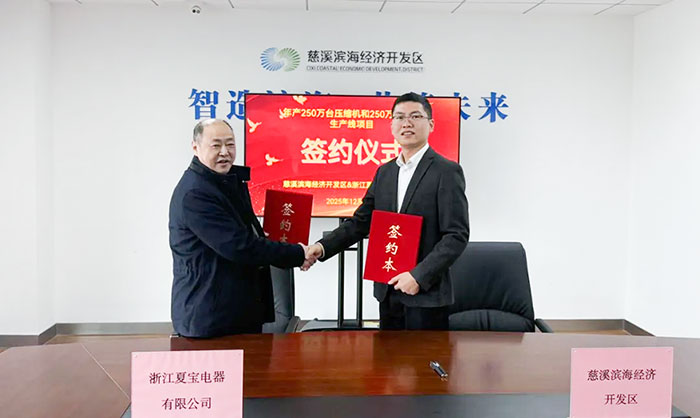 差不多两周之前的12月12日上午,当整个行业在围绕着“双12”大促酣战的时候,浙江夏宝电器有限公司年产250万台压缩机和250万台空调生产线项目签约仪式在慈溪滨海经济开发区隆重举行。据了解,该项目规划总投资额10亿元,项目建成后,将全面提升夏宝电器在变频压缩机、高能效空调等领域的技术优势与市场竞争力。