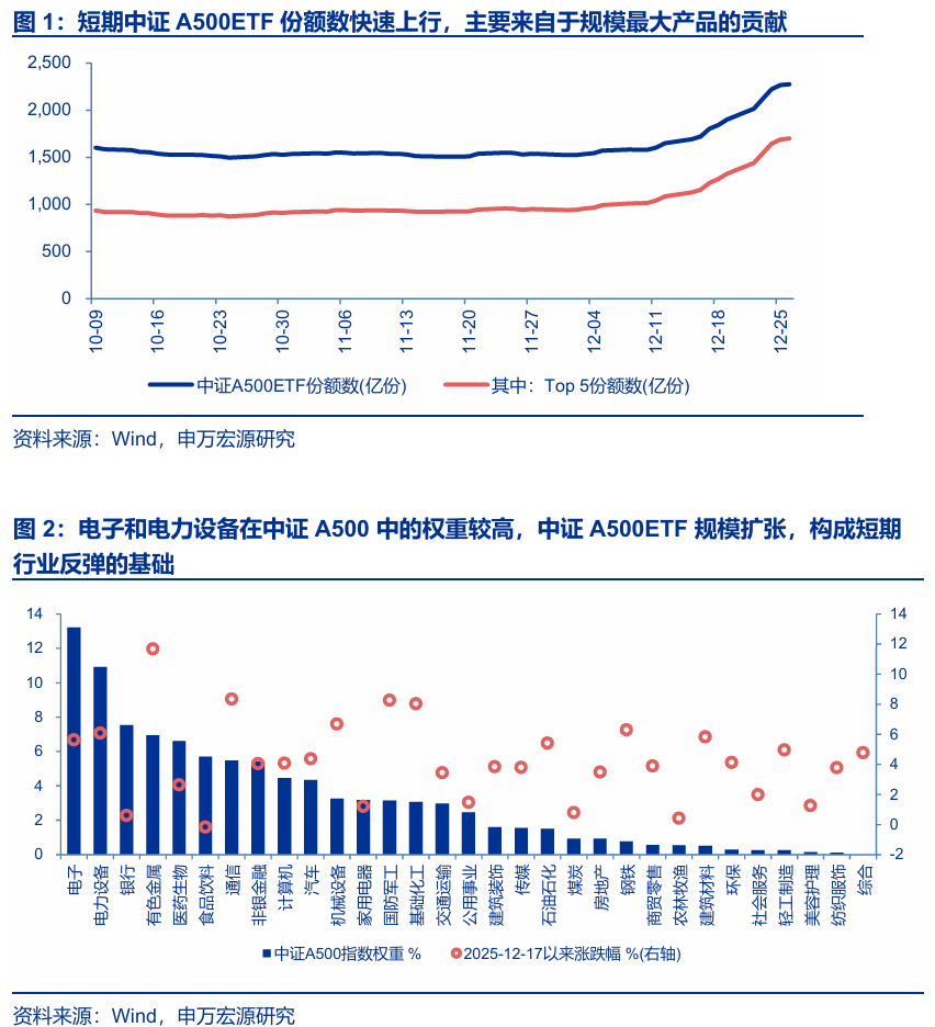 一、短期A股连续上涨,体现出流动性驱动的特征。部分投资者预期中证A500ETF年底冲量,年初可能有所反复,市场可能随之反复。