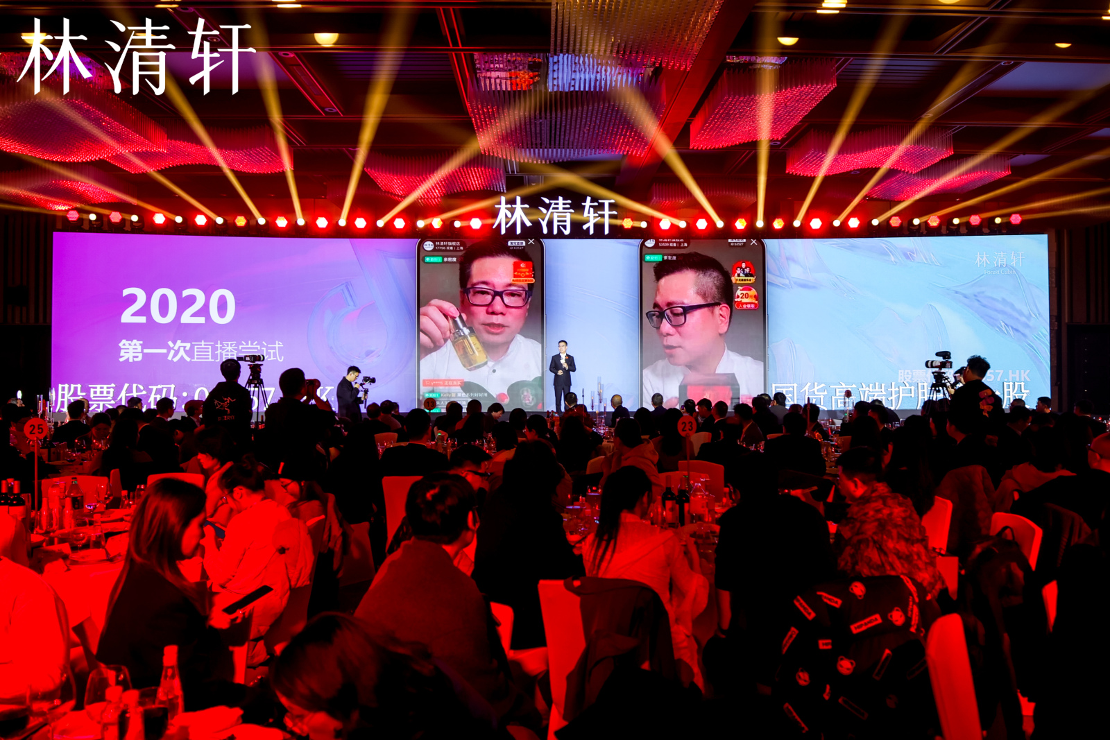 上海交通大学细胞和基因治疗研究院院长、医学博士郑颂国,上海市皮肤病医院皮肤与化妆品研究室主任、医学博士谈益妹,上海皮肤健康概念验证中心执行主任、皮肤医学博士马彦云,上海世领制药创始人、化学博士龚晋慷,南京野生植物综合利用研究所科技处副处长兼天然日化研究室副主任、植物学博士陈斌,南京中医药大学药学院教授、中药学博士王吓长,江南美湾研究院院长、江南大学教授、工学博士李金华,华东师范大学上海国际首席技术官学院特聘教授、医学博士刘玉亮,上海交通大学生命科学技术学院 生物学博士、林清轩体外研究部负责人余果,华东理工大学化学与分子工程学院物理化学博士、林清轩基础研究部研发工程师高成龙,首都医科大学中医药学院医学博士、林清轩体外研究部研发工程师王瀚,浙江大学动物科学学院农学博士、林清轩体外研究部研发工程师王康莉,东京海洋大学大学院生命科学博士、林清轩基础研究部毒理工程师尹世鹏等13位具有博士学历的科研人员,在孙来春和林清轩首席科研官高宏旗的引领下,集体登台,敲响铜锣。