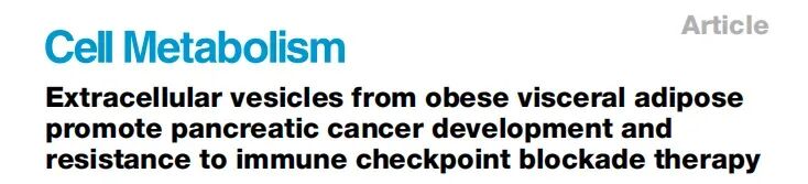Xue C, Zhao S, Zhou Y, et al. Extracellular vesicles from obese visceral adipose promote pancreatic cancer development and resistance to immune checkpoint blockade therapy[J]. Cell Metabolism, 2025, 37(12): 2381-2401. DOI: 10.1016/j.cmet.2025.10.015.