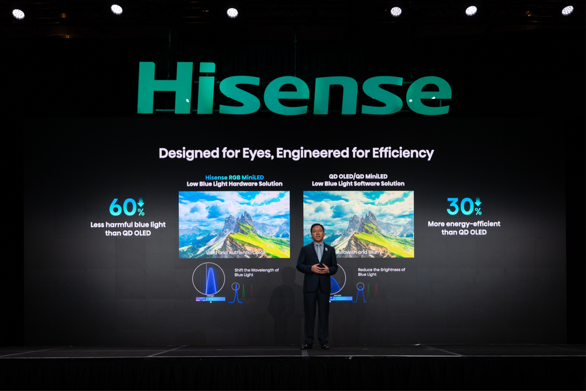 值得一提的是,光源和光色同控芯片的进化,让海信RGB-Mini LED实现了有害蓝光比QD-OLED降低60%,比传统QD-Mini LED降低75%,能耗降低30%,在拥有极致画质的同时,既是护眼先锋,也是节能标杆。