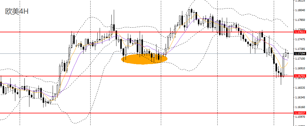 欧美昨日收十字星,仍承压于5日均线,日线RSI位于50附近,4小时一度刺破关键支撑1.1670,但未能有效下破,空头动能减弱,如守住1.17关口,短线有望延续反弹,上方密切关注1.1760附近压力。