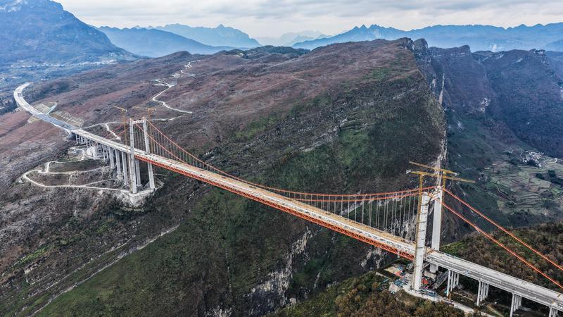 近日,贵州安(安顺)盘(盘州)高速天门特大桥主体工程顺利完工。天门特大桥是安顺至盘州高速公路的重要控制性工程,大桥全长1553米,桥面距离峡谷水面约560米。