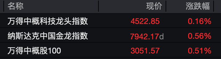 纳斯达克中国金龙指数上涨0.56%,热门中概股普遍上涨。