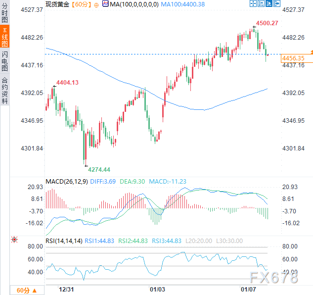 汇通财经APP讯——周三(1月7日)亚欧时段,现货黄金震荡下行,日内跌幅约0.85%,现交投于每盎司4455美元附近。随着市场逐步消化美国近期对委内瑞拉的军事行动,普遍的风险偏好环境引发大宗商品获利回吐。然而,美国总统特朗普关于吞并格陵兰岛的威胁,以及对哥伦比亚和墨西哥的对抗性言论,使地缘政治风险持续发酵,可能会限制金价的跌幅。
