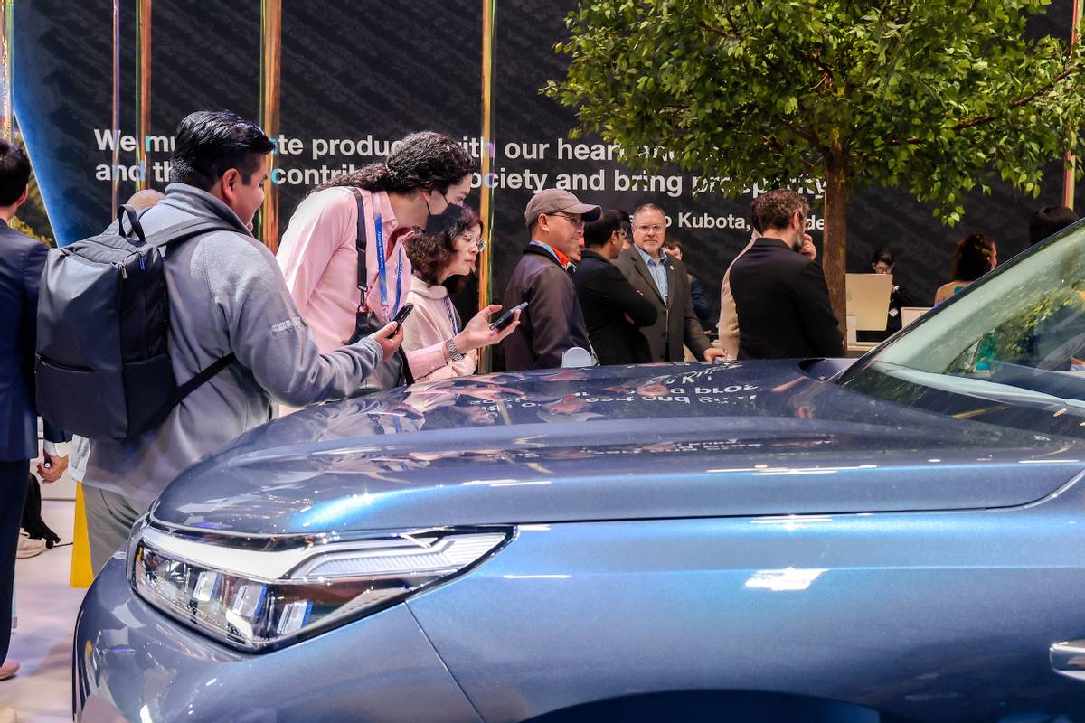 (图:CES现场外国观众排队体验吉利银河M9)
