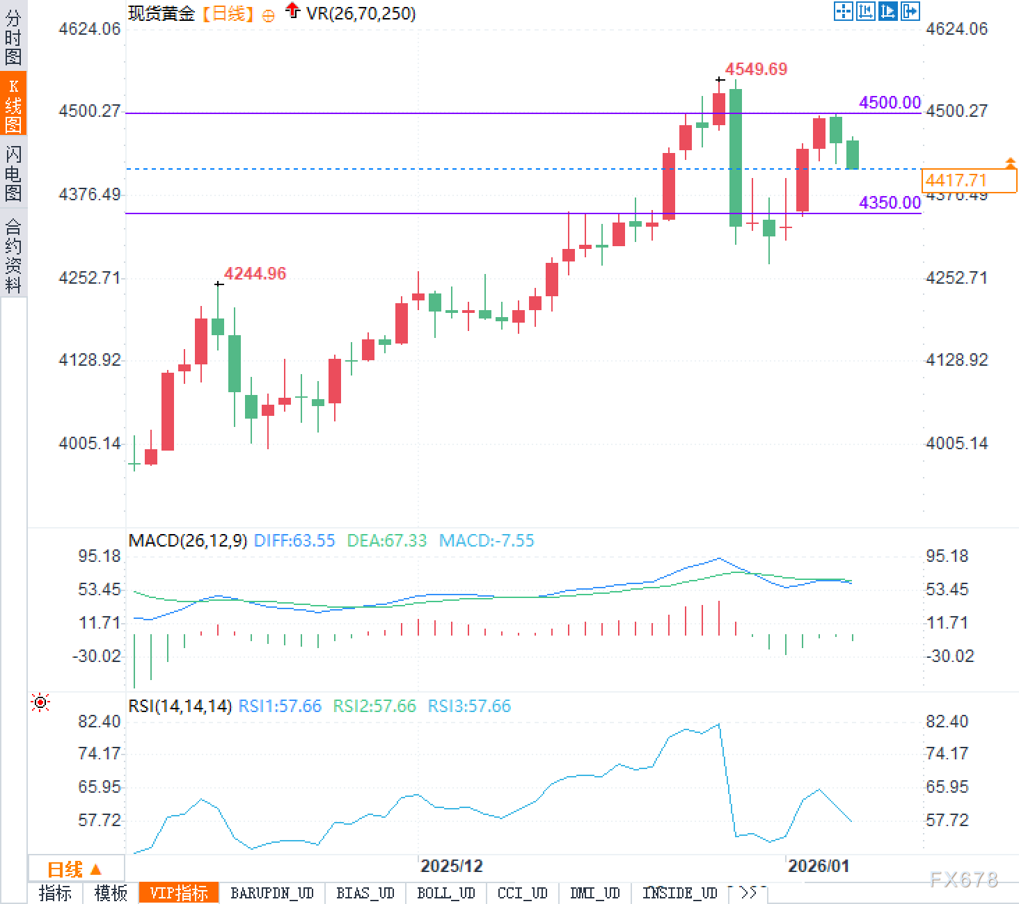 综合来看,当前的回调更像是前期快速上涨后的一次正常消化。基本面并未逆转,但仓位过重、指数调仓与数据密集期叠加,足以引发阶段性回撤。近期的交易主线清晰:一是紧盯初请失业金与非农数据,特别是薪资增速对利率预期的影响;二是观察资金是否继续因再平衡而减持贵金属;三是关注4500美元压力是否持续有效,以及4400和4350区域是否有主动买盘出现。