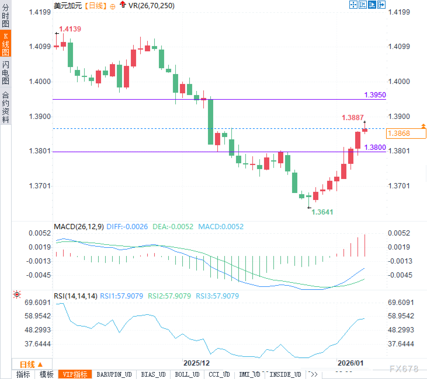 汇通财经APP讯——周四(1月8日),美元兑加元汇价欧洲时段围绕1.3870附近运行。日线结构上,前期从1.4139一线高位回落后曾下探至1.3641,近期出现连续反弹并重新站上1.3800一线,短线多空开始围绕1.3800至1.3950区间展开再定价,事件驱动下波动率抬头的迹象更明显。