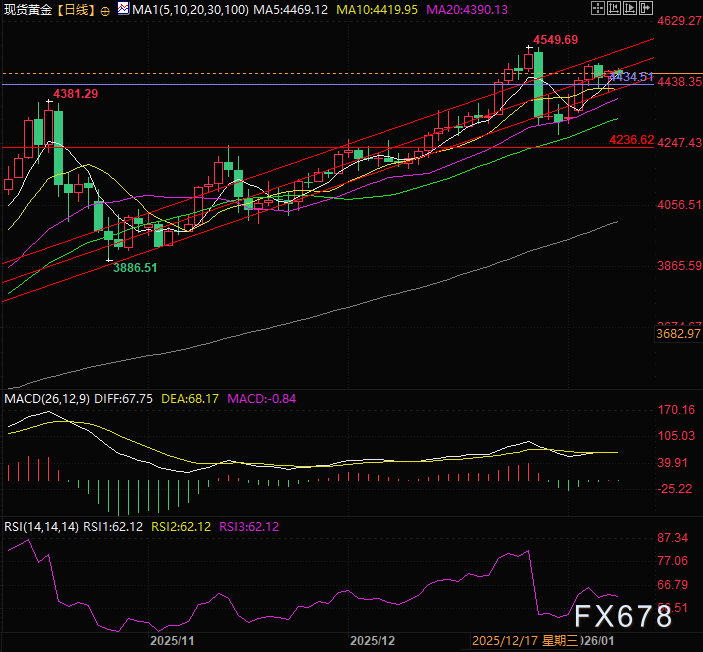 此外,部分交易员因对委内瑞拉相关地缘政治风险的担忧缓解,开始了结前期多单、锁定收益,这进一步加剧了黄金的弱势走势。