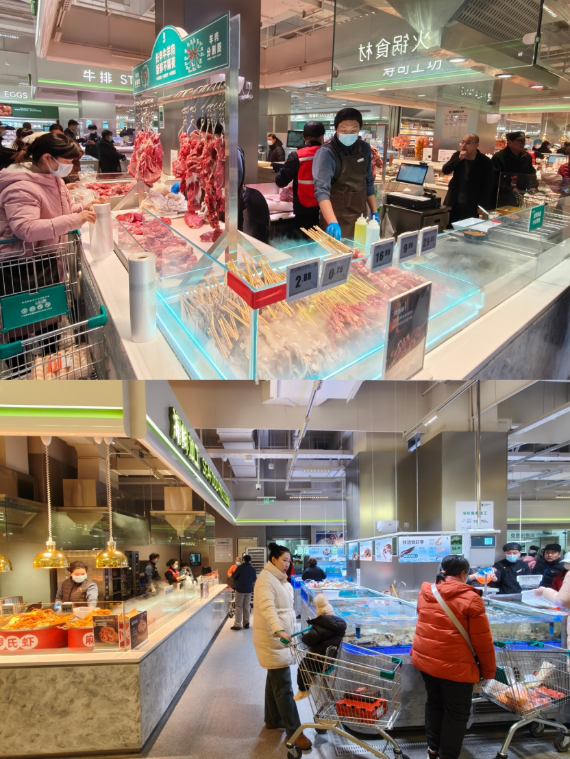 图:长申超市郑州锦艺城店的生鲜、水产和加工区