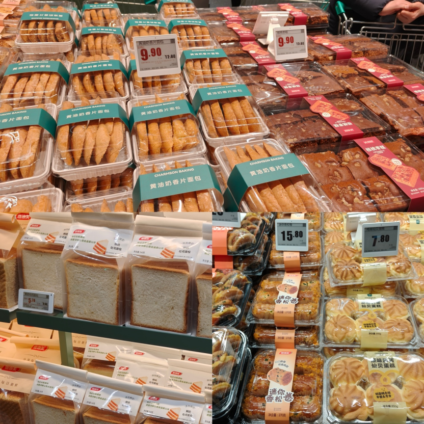 图:长申超市郑州锦艺城店的部分烘焙商品