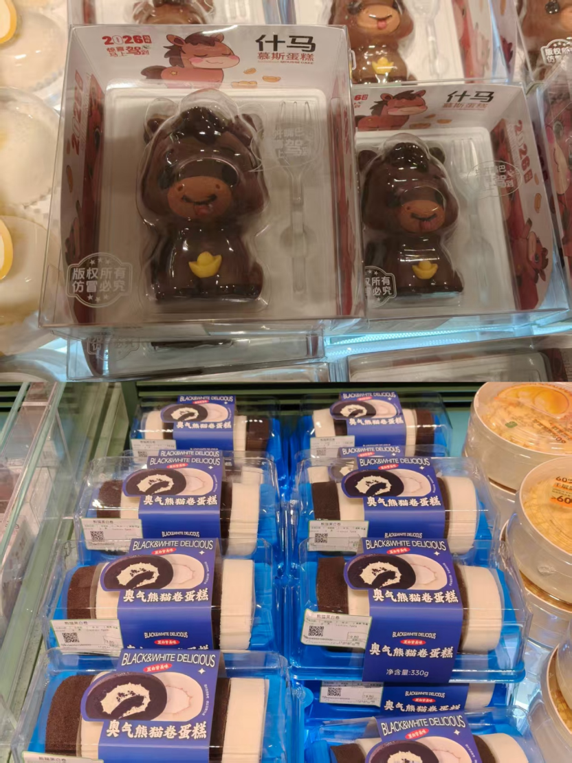 烘焙品类的创新与口味丰富度更是亮点,例如2026年新年特别版什马慕斯蛋糕,以及对标盒马“奥利奥卷蛋糕”的奥气熊猫卷蛋糕等新品,持续吸引消费者关注。