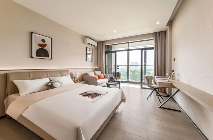 项目是位于中山翠亨新区核心地段的一处国有存量资产,原有276间客房处于闲置状态,原计划仅作为宿舍使用,资产价值未能充分释放。面对国有资产保值增值的政策要求,以及市场对高品质、灵活住宿服务的迫切需求,业主方中山翠亨集团与铂顿品牌携手合作,创新引入 “可住一天,可住一年” 的长短租结合运营模式。