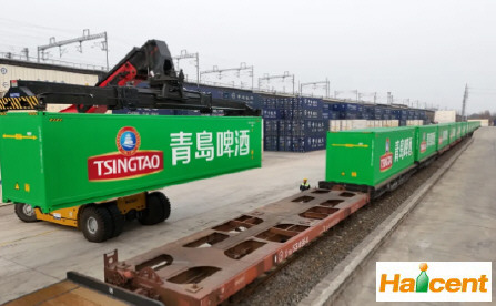 【中国国际啤酒网】近日,首列青岛啤酒自备铁路恒温智能集装箱班列从青岛市娄山发运。