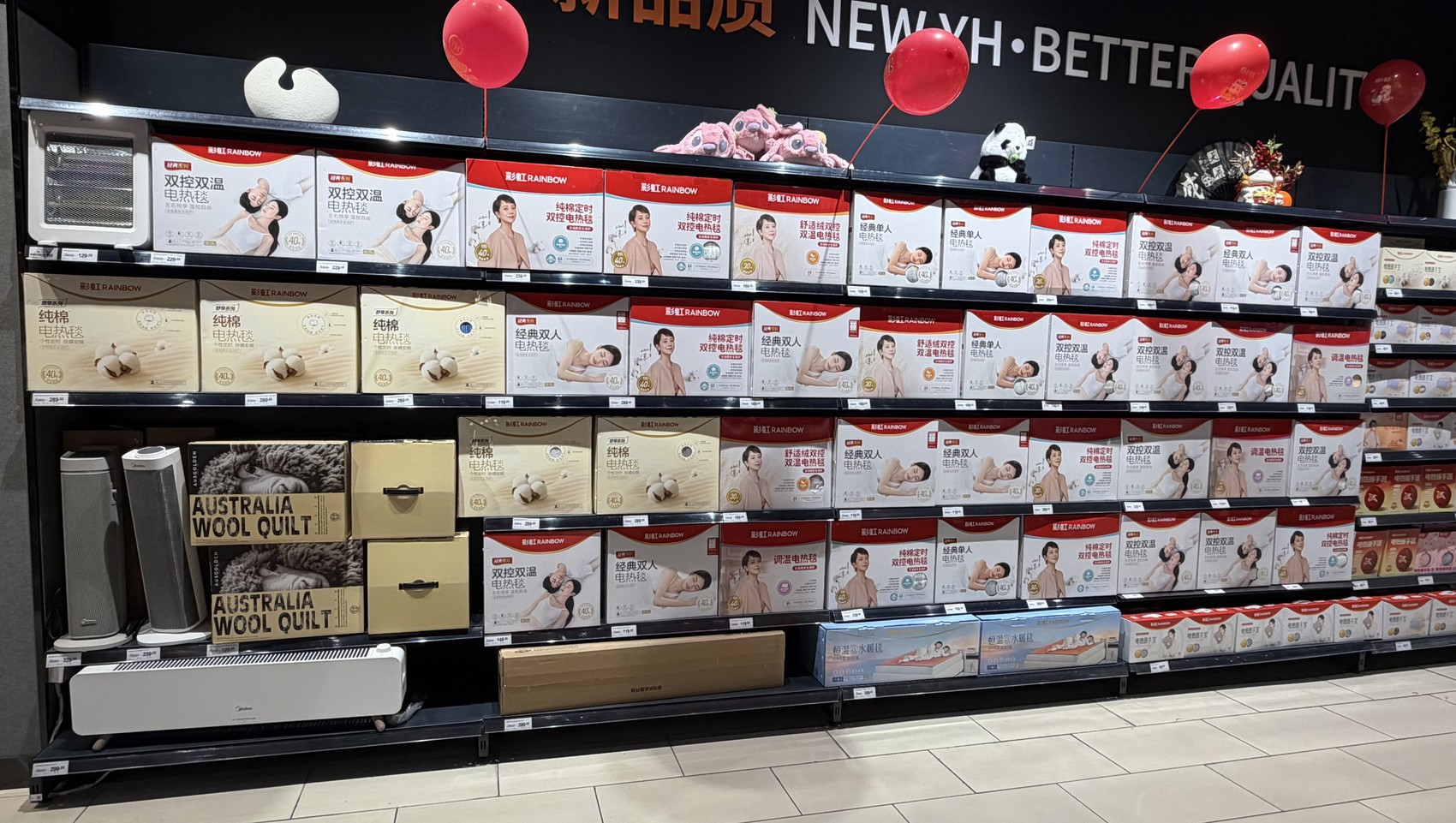 永辉超市里的货架,电热毯占据核心位置。
