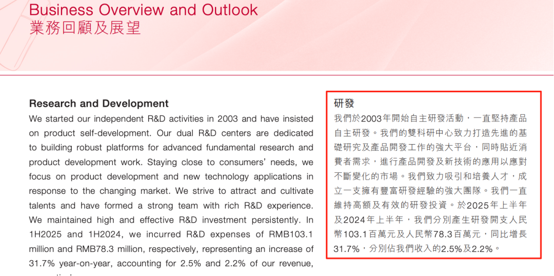 从韩束母公司上美股份 2025 年上半年财报能看出:研发开支仅 1.03 亿元,占总营收的 2.5%;销售及分销开支高达 23.37 亿元,占总营收的 56.9%,同比还涨了 15.9%。