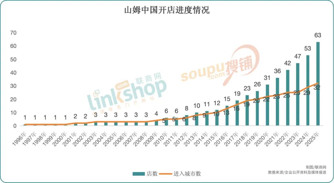 三是全国新开门店数量达到新高。据联商网统计,2025年全国新开10家山姆门店,单年开店数量创历史新高,山姆全国门店数也达到了63家。