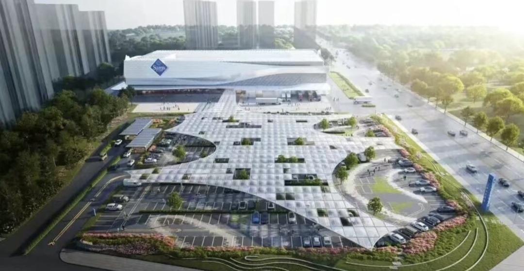 济南高新山姆由原东城物资市场改造而来,总建筑面积约8.1万㎡,项目规划配备约1100个停车位,并将设置屋顶光伏系统,目标年营业额达30亿元。