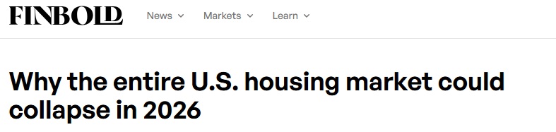 FX168财经报社(亚太)讯 知名财经网站Finbold周四(1月22日)撰文称,美国房地产市场多年来一直是一个有争议的话题,高房价与收入不匹配以及大量空置房屋的存在,催生了至少一个流行的阴谋论。最新的待售房屋数据更是火上加油,整个市场看起来有可能在2026年崩溃。