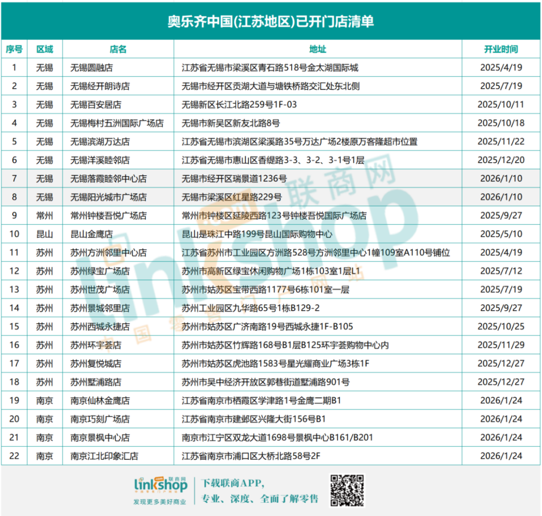 据了解,2026年奥乐齐将继续深耕华东市场,进一步提升上海主要区域店铺数量的同时,也将加速拓展江苏地区版图。按照目前的落位,2026年奥乐齐门店数量将会很快突破100家。