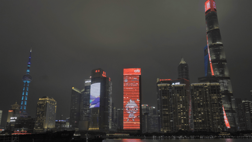 (人保红点亮上海外滩城市之窗)
