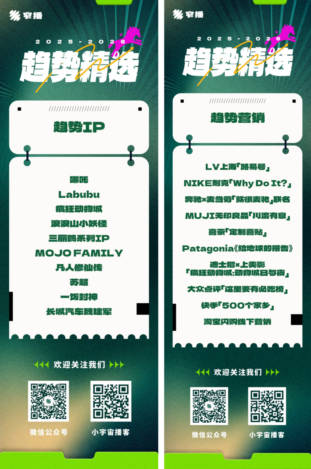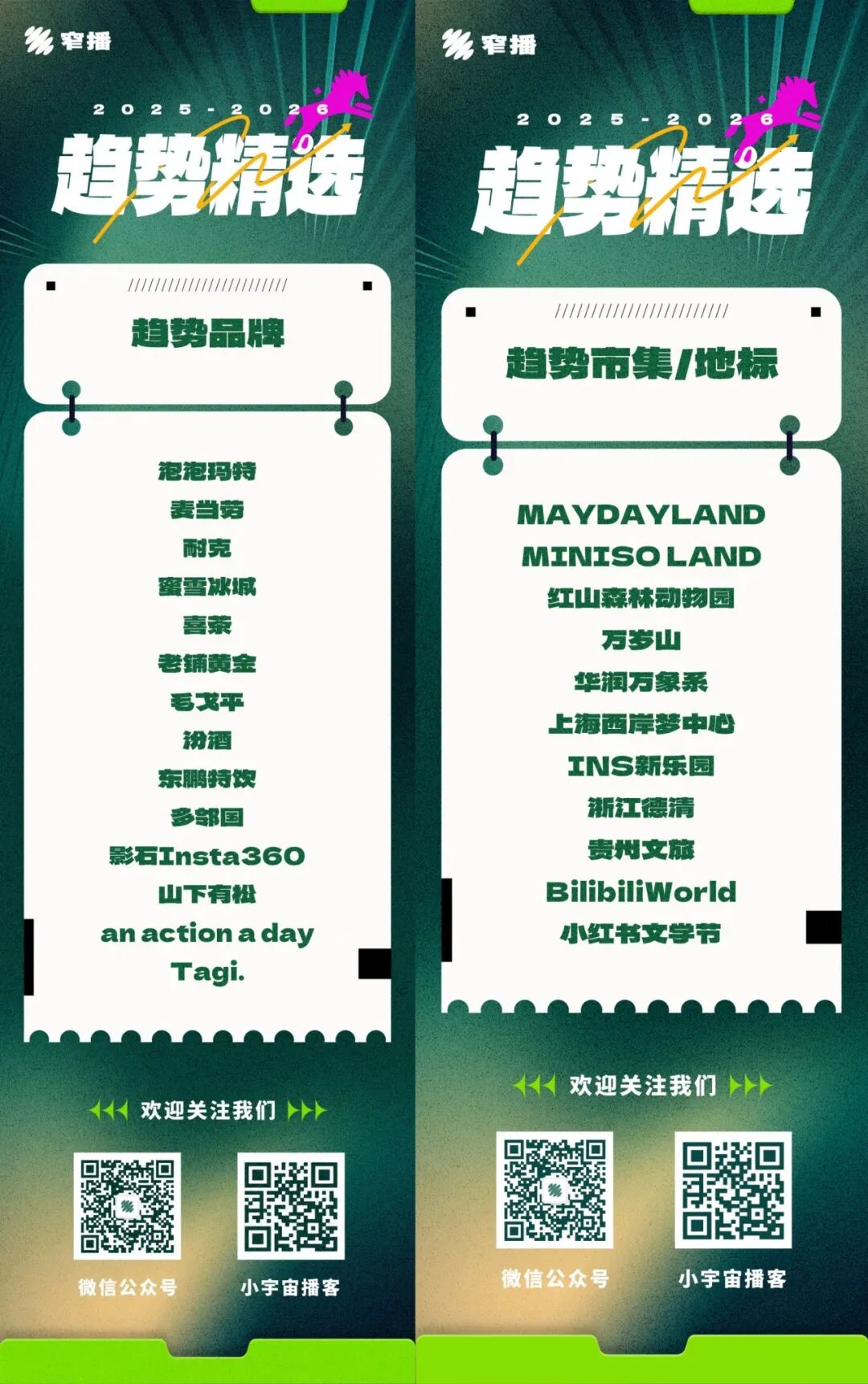 基于对消费趋势的以上总结及预判,以下是窄播编辑部筛选出的2025-2026年度趋势品牌、IP、线下地标/市集、营销案例。