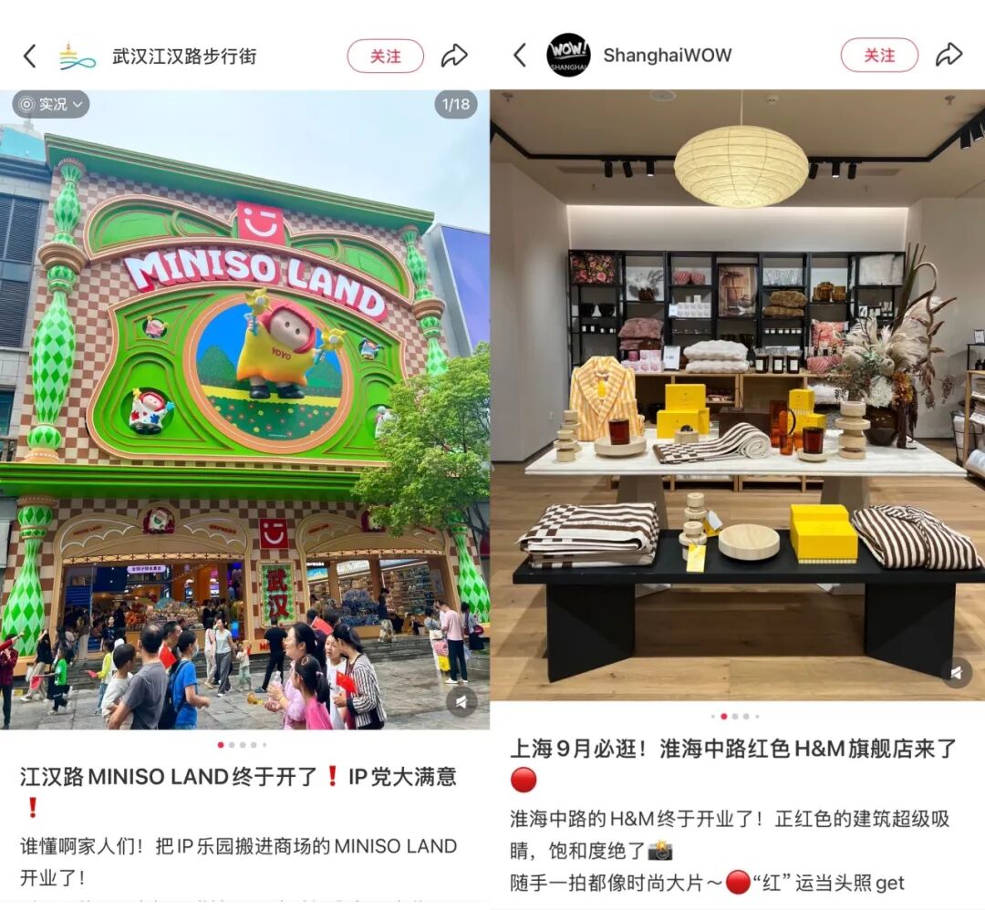 一些头部品牌则开始在线下开大店。例如蜜雪冰城在郑州开出首家旗舰店,不只有茶饮,还卖文创周边;名创优品进入「以大店驱动增长」的阶段,在多个城市开出更强调IP和沉浸式体验感的MINISO LAND;HM上半年关闭20家小店,但在北京、上海开出超大旗舰店,上海旗舰店首次引入花艺服务、咖啡店,以及全球首个开放式直播空间和展示区;LV在上海兴业太古汇开出的「路易号」也融合了路易威登店铺?餐厅和品牌展览。