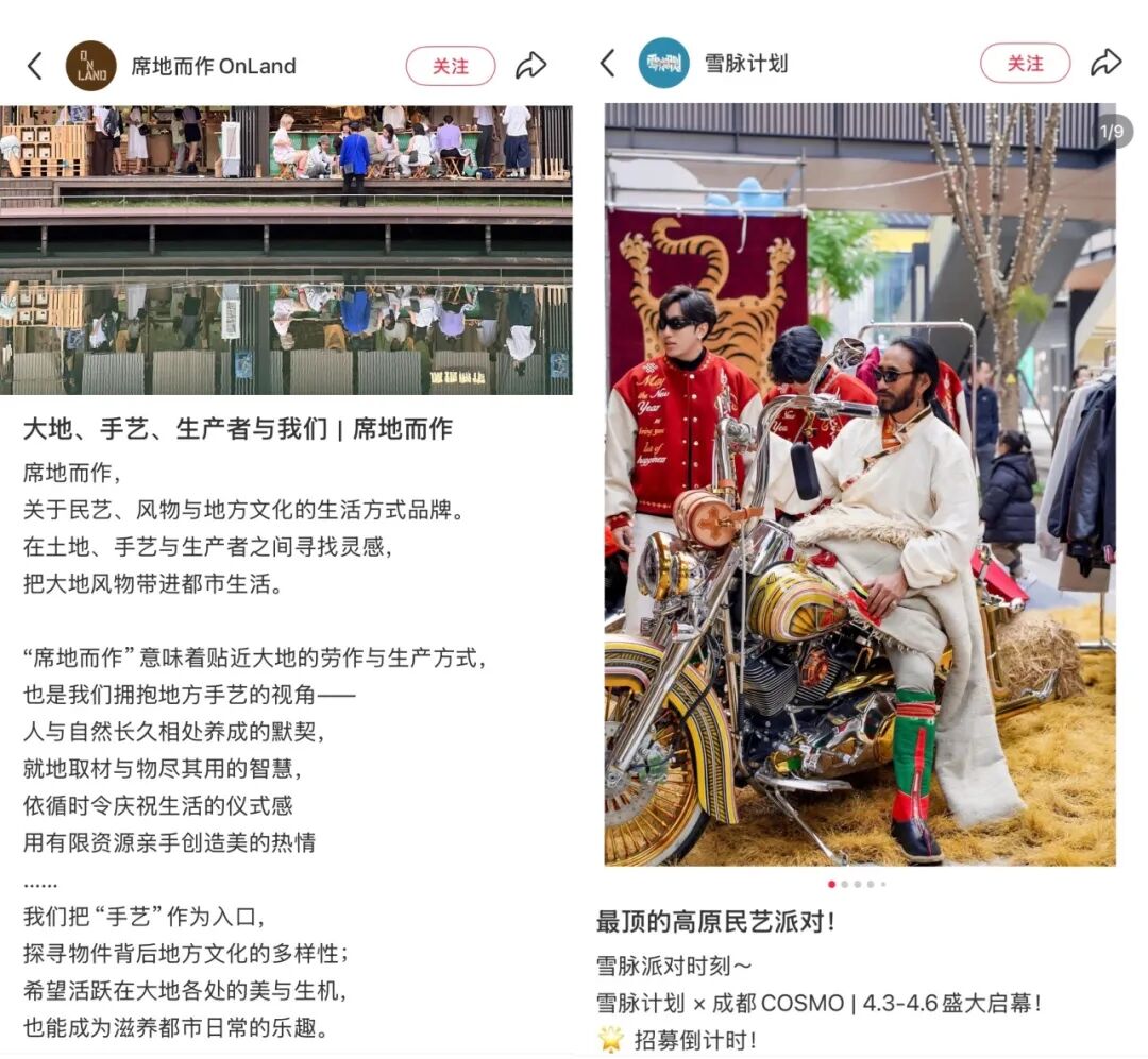 上海、成都、杭州等一线和新一线城市也出现了各类主打在地、民族元素的市集和集合店。例如上海新天地的云南风物市集、深圳南头古城民艺生风纳凉市集、成都cosmo逛逛雪脉计划藏族集市、杭州天目里一家主打民艺、风物与地方文化的生活方式集合店「席地而作ON LAND」。不难发现,这些在地主题的市集、集合店也是实体商业探索非标化的内容尝试之一。