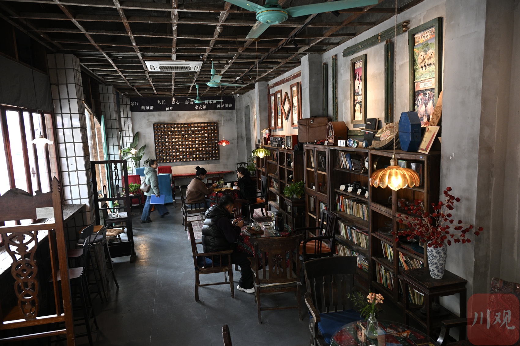 “老屋曾是老客运中心的售票厅、档案室和办公室,改造时仅修复了破损部分,增添老书架、旧桌椅等适配物件,兼顾沉静感与实用性。”咖啡茶馆主理人夏云川介绍,每一件旧物都是故事的容器。他耗时七八年收集了 3000 余件老物件,希望让咖啡馆成为连接时光的纽带。如今,不少周边居民常来此点一杯手冲咖啡,翻看旧书籍,或对着老式相机陷入回忆。