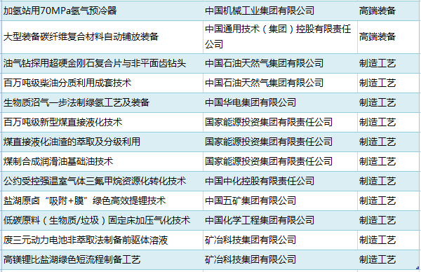 一批石油和化工技术装备位列其中,包括民用飞机防火橡胶材料及密封件、双端基官能化溶聚丁苯橡胶SSBR3540F、羧基丁腈橡胶、气相法制聚烯烃弹性体、ACEA C5 0W-20节能型发动机油、兆瓦级PEM电解制氢装备用氧化铱催化剂、海洋防腐涂层材料DEC-DFY、阻燃生物基(莱赛尔)纤维、气相合成法制石墨烯重防腐涂料、15000米智能钻机、深地油气开发用耐245℃高温钻头钻具、超深井尾管悬挂器及配套工具、单线单釜年产5万吨级莱赛尔纤维成套装备、百万吨级柴油分质利用成套技术、生物质沼气一步法制绿氢工艺及装备、百万吨级新型煤直接液化技术、煤直接液化油渣的萃取及分级利用、煤制合成润滑油基础油技术、公约受控强温室气体三氟甲烷资源化转化技术、盐湖原卤“吸附+膜”绿色高效提锂技术、低碳原料(生物质/垃圾)固定床加压气化技术、高镁锂比盐湖绿色短流程制备工艺等。