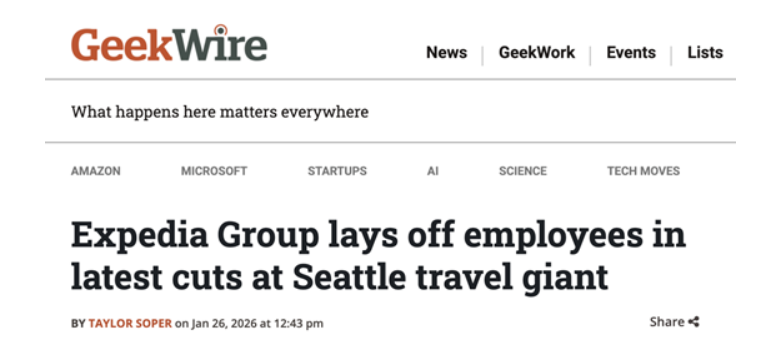 据多名受影响员工在社交平台发帖披露,全球OTA巨头 Expedia Group 近期启动新一轮裁员,受影响岗位包括西雅图地区及其他地区的项目经理和工程师等。